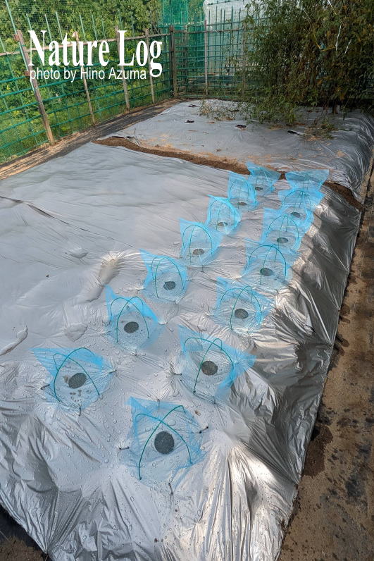 マルチを敷いているので、土から孵るにしても、すべての穴から出てくることもなかろうし、水切りネットによって外から飛来する害虫もブロックできる。問題は水切りネットにどの程度の耐候性があるかという点だが、それも含めて検証してみようと思う。また最近、アマゾンでシルバーアルミマルチなる商品を発見。通常のシルバーマルチよりもさらにピカピカの表面加工がされ、より強い反射光が生じるようになっている。つまり害虫対策に効きそうなのだ。値段はシルバーマルチの1.5倍くらいするが、これも購入してみた。いろいろ試してみようと思う。