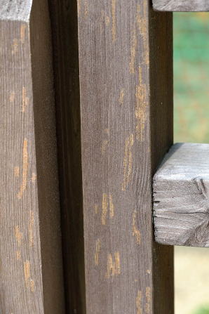 」といいたいところだが、あとで削っていた場所を見ると、細い線のようなキズがあるだけで、ほとんどわからなかった。それにしてもフェンスの支柱も横木も防腐塗料が塗ってあるのだが、その有害性にはキアシナガバチは気づかないということのようだ。