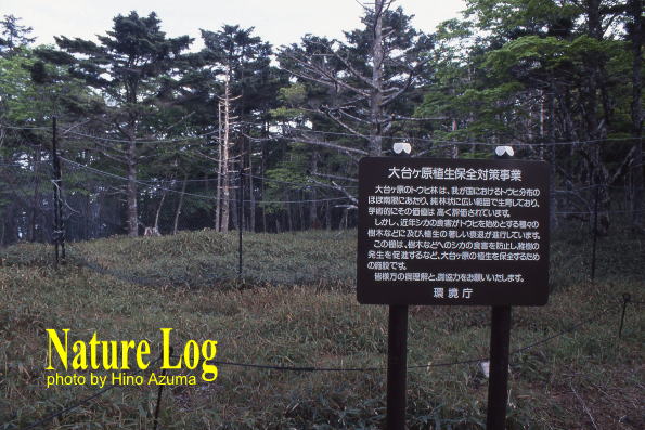 奈良県の大台ヶ原では、環境庁(当時)により植生保全対策事業が行われていた。学術的に価値が高いトウヒ等の樹木をシカの食害から守るためにネットが張られていた。撮影は2001年。