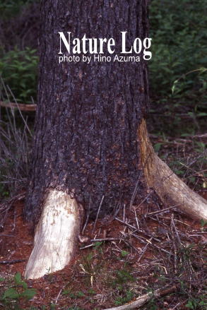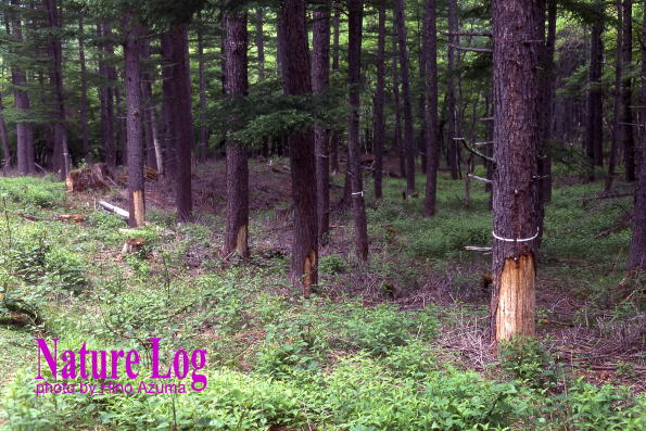 同じく奥日光の千手ヶ浜で見かけた光景(上下とも)。やはりシカの食害により根元付近の樹皮が食べられていた木が結構あった。撮影は上下とも2000年。