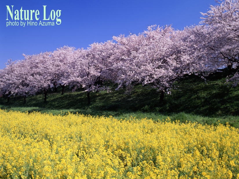 ![]() シーズン中は、1キロに渡ってソメイヨシノとナノハナの見事な景観が続く(1998.04) |