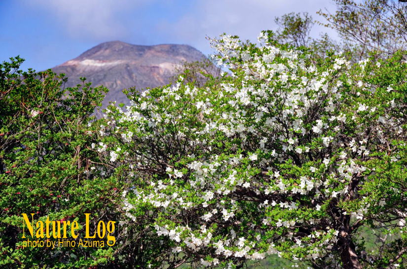 ![]() 茶臼岳を背景に満開となったシロヤシオ(2009.06) |