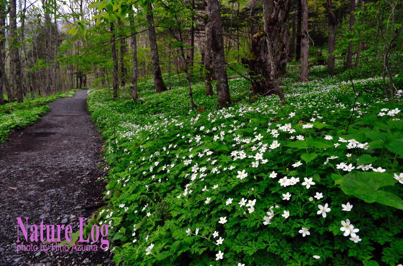 読み/かみこうち(ふるいけふきん) 位置/[36°15′09″][137°40′44″] 花の種類/ニリンソウ 花期/5月中旬〜6月上旬 上高地が新緑に覆われる初夏は、新緑だけでなくニリンソウの大群落も見落とせない。特に規模が大きいのが、明神と徳沢の中間にある古池の前後。その明神にもニリンソウ群落があるが(明神館の裏手とか)、そこから徒歩15分ほど歩くと、遊歩道の左右にニリンソウが絨毯を敷いたようにびっしりと咲き誇っている。さらに歩を進め、徳沢のそれも素晴らしいが、こちらはまた別途ページを作って取り上げたい。群落の中でよく探せば、ミドリニリンソウやベニサシニリンソウなどの品種も比較的簡単に見つけられる。 |