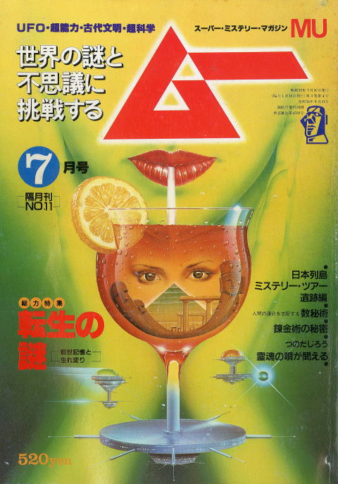 学習研究社の『ムー』といえば、誰もが知る日本を代表するオカルト系雑誌。私が高校生の頃に創刊され、少し気づくのが遅れて購読したため、手元にあるバックナンバーのうち、最も古いのは写真の1981年7月号(第11号)である。当時は、まだ隔月刊だったが、この手の話題が大好きだったこともあって夢中で読んだ。第12号「衝撃のファチマ大予言」や第18号「日本超古代文明の驚異」などの特集は、もうシビレまくったね(笑)。