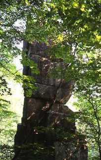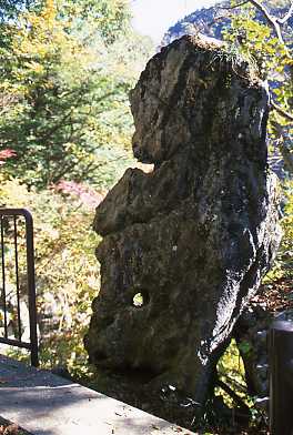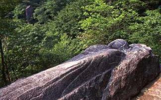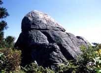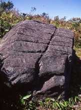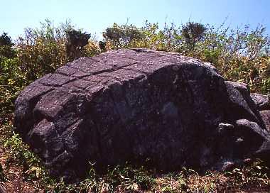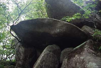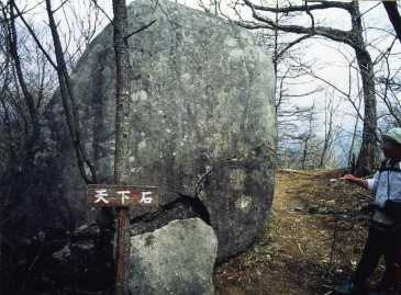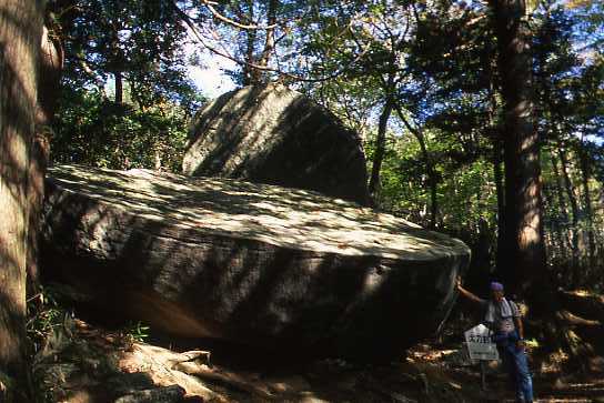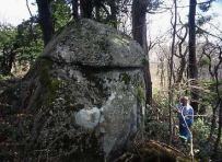 各地の山には、不思議な岩がある。自然の岩がたまたまそんな形になってしまったのか、それともいつの時代にか人工的な加工が施されたのか。その検証は、ちょっと横に置いといて、とりあえずどんなものか見ていくことにしよう。 ●相輪塔/袈裟丸山(群馬県東村) 袈裟丸山(けさまるやま)の中腹にある自然石が積み重なった高さ18メートル、幅3メートルの岩塔だが、上の岩の方が下の岩よりも大きい不思議な組み合わせになっている。伝承によると、この岩塔はもともとは沢入地区にあり、土地の女たちから信仰を集めていたのだが、彼女たちが塔に上がるのを嫌った天狗が、一夜のうちに現在の場所に移動させてしまったという。その時、天狗は上の岩から順に運んで積み上げていったので、下の岩ほど小さい不安定な姿になったと伝えている。 ちなみに相輪塔の足元には、数体の石像が置かれている。私はこの石像に近づいたときに、ぞわ〜と鳥肌が立った。何かあるのかないのかわからないか、かなりイヤな感じかしたのは事実だ。 なお相輪塔近くには岩に彫り込まれた大きな寝釈迦像もある。こちらはいつ誰が彫ったのか不明で、一説には足尾銅山に送り込まれて病死した人を弔うために彫られたともいわれている。 ![]() ![]() 不安定そうな相輪塔 寝釈迦像。左手奥に見えるのが相輪塔 ●条溝石/烏帽子山(広島県庄原市) 「とっておきの自然」でも紹介した比婆山(ひばやま)の隣にある烏帽子山には、ひとかかえもある条石岩と呼ばれる大岩がある。立方体状の岩の表面に、はっきりとした複数の並行する溝と、それに交差する一本の縦溝が彫り込まれている。これは明らかに人工的に彫られたものと思われるが、いつ、何の目的で加工されたのかはわかっていない。ただ、ひとつ興味深いのは、縦溝は比婆山山頂を指し示している点だ。山頂には日本神話のヒロイン・伊邪那美命が葬られた御陵があることから、それを示す道標のような意味があったのかもしれない。比婆山一帯には、同様に人の手が加わったと思われる岩が数多くある。 ![]() ![]() ![]() 溝が彫り込まれた条溝石岩(左・中)とその解説板(右) ●烏帽子岩/烏帽子山など(広島県庄原市) 条溝石と同じ烏帽子山にある烏帽子岩は、名前の通り烏帽子状をした巨岩で、大きな台座となる岩の上に、さらにひとまわり小さな岩を重ねた形をしている。これは自然のものともいえるが、同様の形をした岩は比婆山をはじめとして各地に点在している。私が実際に確認しただけでも次の通りだ。 1烏帽子岩/広島県庄原市・烏帽子山 2太鼓岩/広島県庄原市・比婆山 3観音岩/広島県庄原市・葦嶽山 4御守岩/広島県広島市・武田山 実はここに挙げた以外にも、群馬県や京都府、長野県にも似た形の岩があり、いづれもふたつの岩から構成されている。これらの岩は、もともとひとつの岩だったものが、何らかの原因でふたつに割れたために、大きな岩の上に小さな岩を人為的に置いたように見えるという見方もできるが、例えば烏帽子岩の写真を見る限り、左側の縁のラインは上下の岩で連続しておらず、そうした見方に疑問を感じる。なお太鼓岩は、中が空洞になっているのか、叩くとかすかに響くことからその名前が付けられたもの。また観音岩だけは少しとんがり気味だが、見る方向によっては烏帽子岩に似ている。 ![]() ![]() ![]() 烏帽子山の烏帽子岩 比婆山の太鼓岩 葦嶽山の観音岩 ちなみに葦嶽山(あしたけやま)は、日本ピラミッドとして名前が知られる山。秋田県鹿角市のクロマンタ(黒又山)が注目されるはるか以前に、ピラミッド状の特異な姿から自然の山をピラミッド状に加工したとする説が発表された。現在では日本ピラミッドとして地元の観光スポットとなっており、登山口には「日本ピラミッド」と書かれた標識も立っている。日本にピラミッドとは突飛な感じがするかもしれないが、クロマンタでは地中レーダーの調査で、山の内部に階段状の地形があることも確認されている。また葦嶽山でも、先端に丸い穴が開けられた四角柱の石など、人工的な加工が施された岩もあり、何らかの遺跡である可能性は否定できないだろう。 ![]() ![]() 葦嶽山の岩。石柱上部に開けられた丸い穴(左)と真っ平らの巨岩(右) ●続石(岩手県遠野市) 続石は、民話のふるさと、岩手県遠野市にある不思議な岩。山岳地ではないが、静かな里山から少しばかり山の方へ上がった林の中にある。写真をご覧頂ければすぐにわかるが、実に絶妙のバランスで成立している3つの岩から構成される。伝承では弁慶が置いたとされ、遠野物語にも登場する。 ![]() ![]() 上の石は幅7m、奥行5m、厚さ2mもある。左の写真赤枠内をアップにしてみると、 左側の石とはわずかな隙間があるだけで決して接してはいないのがわかる(右) ●無名のレンズ状石/姫神山(岩手県玉山村) 姫神山の一本杉登山口から山頂へ向けて登る途中に、奇妙な岩がある。いうなればレンズのような形をした奇岩なのだが、その下にあ