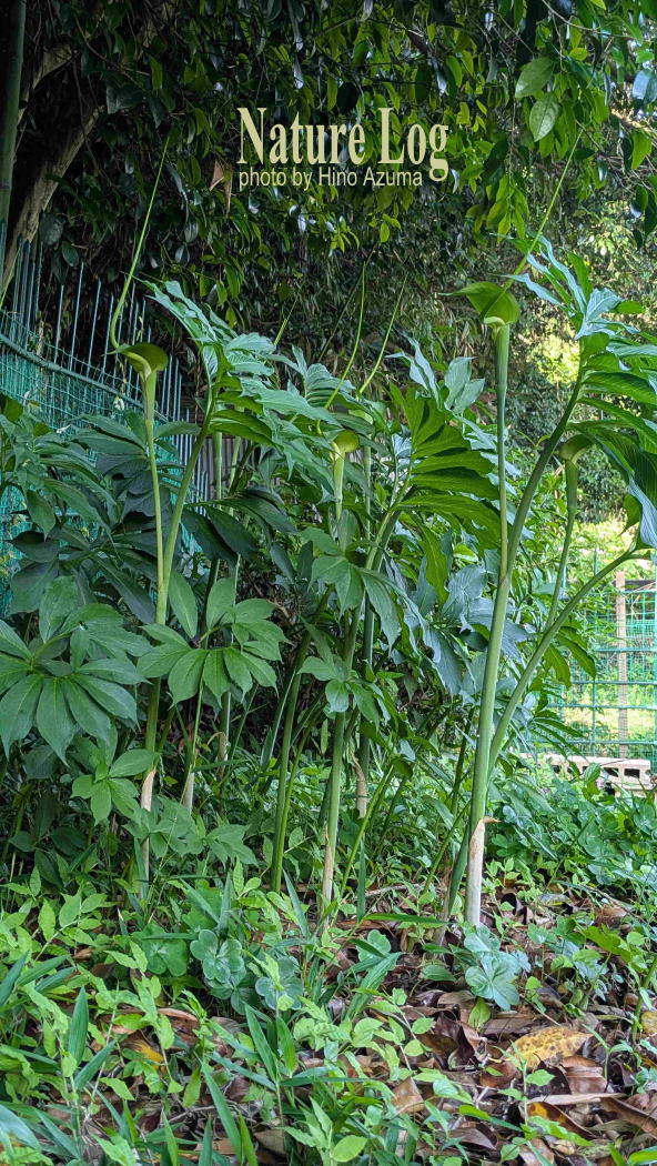 ただ、その一方でもともと自生していた可能性も排除できない。というのもこの場所は我が家が移り住んで以降、ずっと長い間ヤブだったのも間違いなく、ヤブを刈って近づけるようになったのはここ十数年くらいのことである。そのため両親は、気づかなかっただけかもしれないともいっていた。確かに本種が目につく仏炎苞を立ち上げるのは、1年のうちごくわずかな期間だけ。それ以外の時期に気づくことはまずないだろう。しかもヤブであれば余計に目にとまる可能性は低いと思われる。