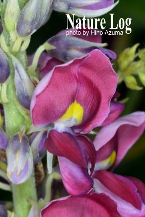 紅紫色の蝶形花。旗弁の基部は黄色い。ブドウのような甘い匂いがある/広島市。