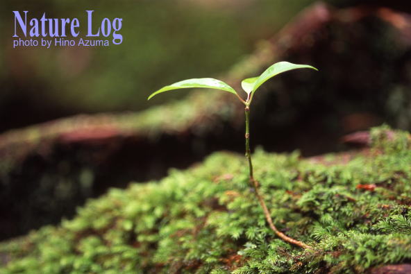 倒木上には、スギだけでなく、照葉樹(樹種は不明)の芽生えも。