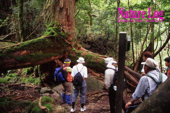 倒木更新の過程を観察するのに適しているのは屋久島だと思う。島内の遊歩道や登山道を歩くと、倒れて間もない木もあれば、時間が経って表面が苔むし、そこから幼木が育ちつつあったり、あるいは倒木がすでに朽ち果て、根元に空間ができている木があったりする。そんな倒木更新があちこちで進んでいるのがわかる。