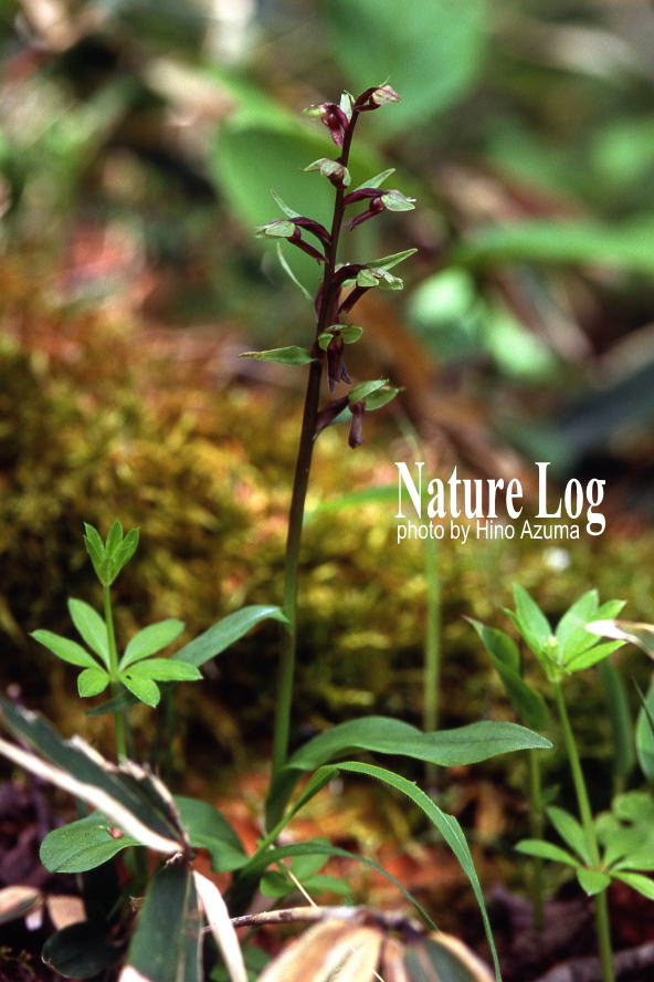 地味なランだが、時々、山で出会う。山梨県内の某渓谷で。