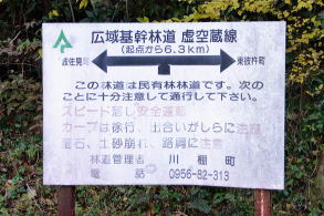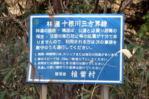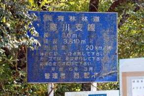 ここでいう林道標識とは、林道名を表示した標識の意味。国道や県道には、必ず「国道○号」「県道○号」みたいな青い逆三角形や六角形の標識が立っているが、林道では、こうした標識が立っていることは少ない。どちらかというと一般の利用が多い林道には、林道名の標識が立てられているが、そうでなければないことの方が多い。ただ、それは名称がないからではなく、基本的にはすべて名称が付けられて管理されている。