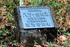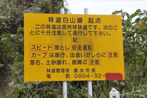 林道標識がおもしろいのは、たとえ森林管理署が管理する国有林内の林道であっても国道や県道のように一律に決まった標識の形式があるわけではなく、割と自由にそれぞれの森林管理署が作っているとみえて、材質も大きさも形も文字の色もいろいろ。大きくて立派なものもあれば、小さくて簡素なものもあって、その多様性がおもしろいのだ。手の込んだものは、森林管理署職員の、その林道に対する思い入れみたいなものさえ感じる。