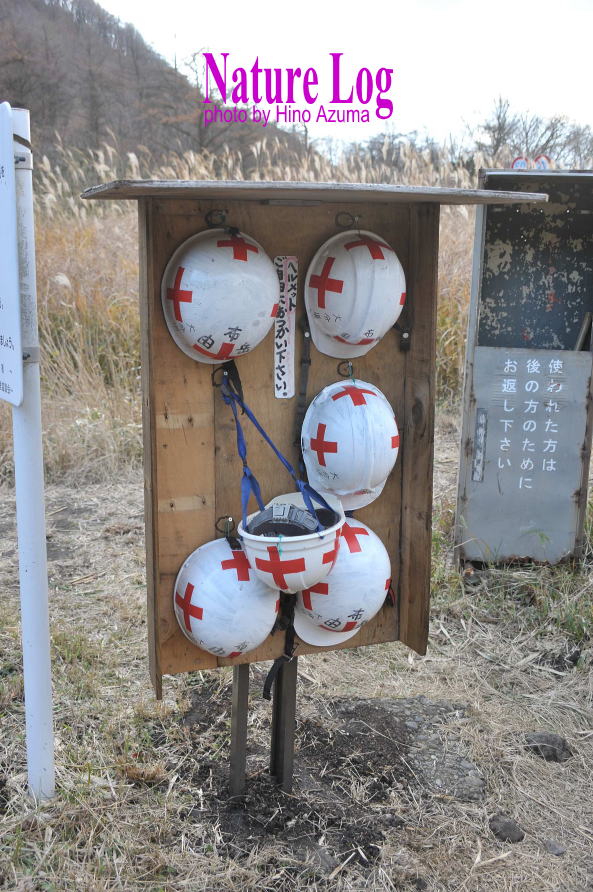 この日は、晴れの土曜日(現地到着時は曇った)で、登山者の車で駐車場は8割くらい埋まっていたが、6個すべて揃っていたので借りている人はいなかったようだ。ただ、揃っていること自体、誰も持ち帰っていないことの証明でもあり、日本らしいと思った。諸外国であれば、いくら高価ではないヘルメットでも、すぐに盗まれるだろう。近年、日本人のモラルも劣化している印象ではあるが、こうした地元の気遣いが、これからも問題なく成立する社会であってほしいものである。