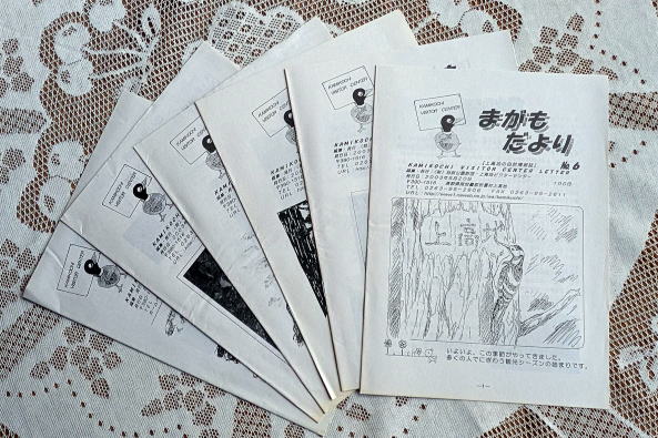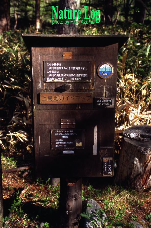 ![]() 上高地・河童橋付近に設置されている有料頒布箱。撮影は2008年。 ![]() 上高地で現物を入手できる情報誌2種(写真上下)。私が保管している「まがもだより」。最も古いのは2003年5月20日発行のNo.6だった。現在も年3回の発行が継続されているようだ。 ![]() 左から1998年版の「上高地散策ガイド」、2003年4月27日発行の「上高地散策ガイドマップ」、2001年9月20日発行の「マガモ新聞」。 ![]() 岩手県と秋田県の県境にある八幡平・見返峠駐車場付近に設置されたセルフガイド頒布箱。これも1部100円。撮影は2008年。 ![]() 北海道比布町・突哨山(とっしょうざん)の村上山公園登山口にあるガイドマップ頒布箱。撮影は2013年。 ![]() 本文でも触れた新潟県柏崎市・八石山登山口の観光パンフレット頒布箱。撮影は2016年。 ![]() 静岡県伊豆市と西伊豆町の境にある仁科峠に置かれたガイドマップ頒布箱。撮影は2012年。