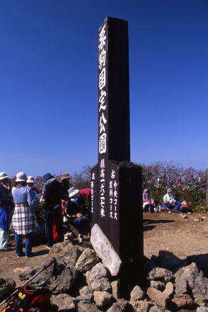 ■石碑タイプ ![]() 長野県南木曽町の南木曽岳山頂に建立された山頂石碑。ここまでどうやって運んだのか知りたい。撮影は2007年。 ![]() 東京都八王子市と神奈川県相模原市の境にある陣馬山の山頂石碑。陣馬山といえば、大きな白馬の像でも知られるが、どちらもこんなところによく設置したなと思わずにいられない。撮影は2001年。 ![]() 茨城県つくば市。日本百名山の筑波山。そのうち女体山山頂に設置された立派な山頂石碑。撮影は2012年。