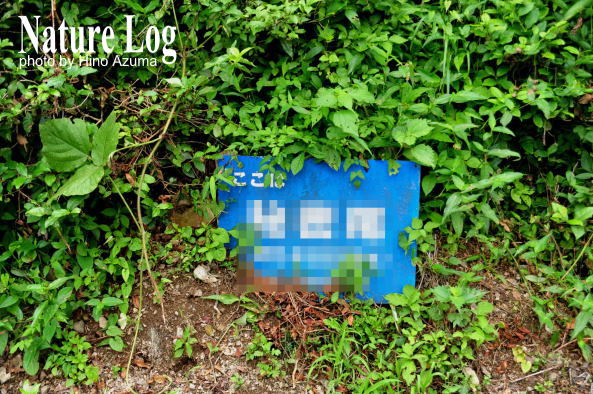 草に埋もれかけた地名表示板。実に謎めいた地名が書かれていたが、特定されない方がいいと思うので、こちらもモザイクにした。