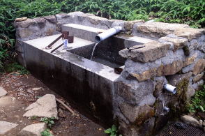 水場は登山コース途中のほか、山小屋や幕営指定地近くにあることもある。時には数分とか十数分とか離れていることもあって、そんな時はボトルなどをもって往復しなければならない。いづれにしても水場は山では貴重な場所なので、残飯やゴミで汚さないようにし、当然ながら洗剤を使わないのがマナーだ。
