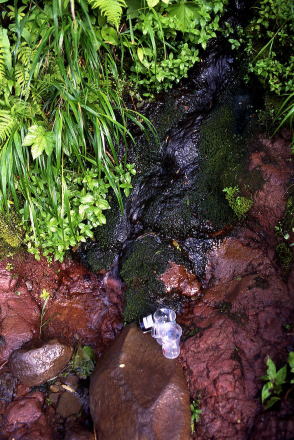 八幡平の熊ノ泉。黒谷地湿原にある。撮影は2002年(左)。五葉山・石楠花山荘の水場。五葉山には登山道途中にも水場がある。撮影は1994年(右)。