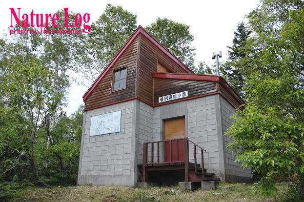 北海道増毛町。暑寒別岳・箸別登山口に建つ箸別避難小屋。奥に別棟のトイレがある。すぐ手前まで車で行ける。位置付けは「避難小屋」ではあるが、登山口にあるので、緊急避難的な利用は少ないかもしれない。