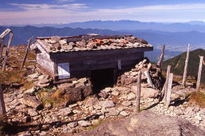 岐阜県高山市。乗鞍岳・千町尾根の奥千町避難小屋。撮影は2000年だが、完成して間もないようだった。千町尾根経由で乗鞍岳登山をする場合。この避難小屋の存在価値は大きい。