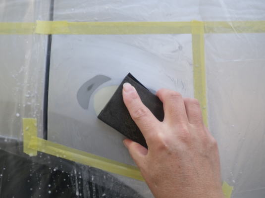 塗装作業日の天候は、結構重要。気温がある程度高くて、よく晴れた乾燥した日で、しかも風がない方がベスト(風があると、スプレー塗料が飛散して無駄になる)。たとえ晴れていても雨後だと湿気が多いので乾燥しにくく、塗装面にムラが生じたり、塗料が垂れたりする。気温が低かったり湿気があるようなら、急がずベストの日を待つべし。また2〜3度往復してスプレーしたら、少し時間を置いて乾燥させてから重ね塗りする。そうでないと、やはりムラや垂れが生じやすい。