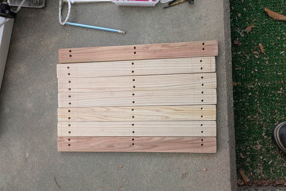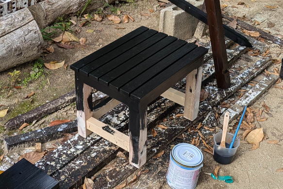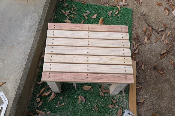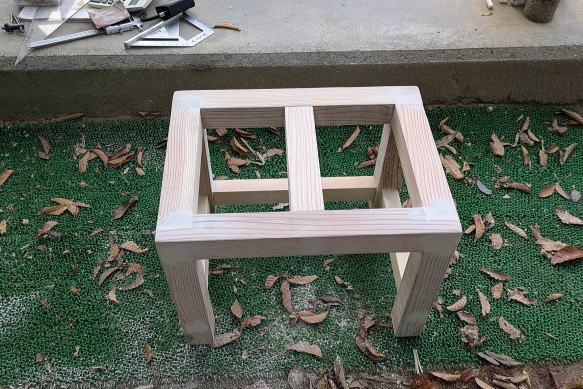 ![]() 完成した電気ポット台。背後の本棚が黒(正確にはチャコールブラック)なので、それに合わせて黒で塗装した。台の下には、コーヒーかすを捨てる容器を置けるようにした。電気ポットは本文に書いたショート事件ののちに買い替えたもの。右奥は、車載もできるタイプのペルチェ素子冷蔵庫。そこそこ冷える。夏はいちいち一階に降りなくても、仕事部屋で冷たいドリンクを飲めるが、冬場は撤去する。 ![]() 4.5センチ角材で、まずは脚と梁とを組み立て、木組みと木ねじで固定する。右下は電動カンナ。木工工作にはなくてはならない工具で、かなり使える。 ![]() ネジや隙間をパテで塗って乾いたあとにサンドペーパーで表面を整える。 ![]() 天板となる板を切って、ネジ穴を開ける。 ![]() 本体に天板を取り付けたところ。同様にネジ穴をパテで隠す。 ![]() 室内使用なので、耐候性はあまり気にしなくていいい。水性黒ペンキで塗装して、乾けば完成。 |