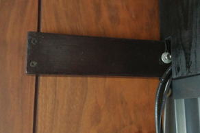 角材には左右と中央の3ヶ所の穴を開けてボルトを通し、樹脂皮膜の細いワイヤーでラックとを結ぶ。最後にナットを締め付ければ、結構しっかり固定できる。まあ、震度いくらまで耐えられるかは不明だが、なにもしないよりマシだろう。