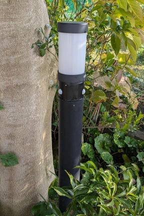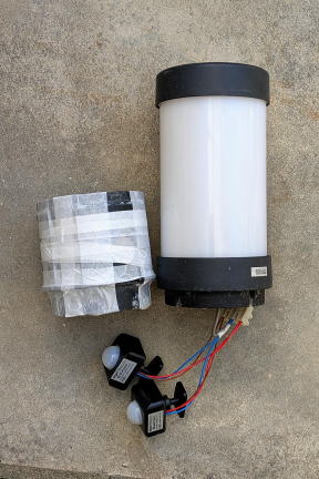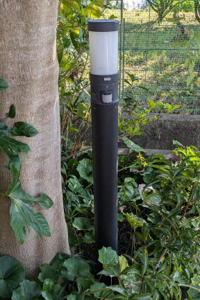 玄関側と裏口側の、どちらの庭園灯も新しいセンサーと交換してツインセンサーで反応するようにした。センサー調整ダイヤルの「(周囲の)明るさ」をMAX、点灯時間をMINにしておいて、反応具合をテスト。問題なければ両ダイヤルを任意のレベルに変更し、さらに念のため夜間でも反応を確認して作業完了である。