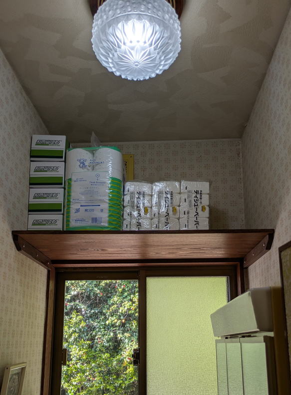 収納スペースがもっとほしい、と思うものの、部屋が狭くなるだけなので収納家具は置きたくない。そこで、ふと思いついたのが、家の中のデッドスペース(無駄な空間)に自分で棚を追加する、というプラン。数年前。そのアイデアのもと、自宅の脱衣室に設置し、続いて今年(2025年)春、二階の洗面所にも二つ目の棚を作った。秦野の戸建て賃貸物件に住んでいた時も、同じ方法で廊下に棚を自分で付けたのだが、やはり手早く収納場所を作れたので便利だった。