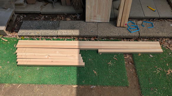 先代PCの時もラックは自作したのだが、新しいPCは先代よりもひとまわり大きくて、同じラックは使えない。そこで新たにラックを作ることにしたが、それに合わせて仕事部屋のレイアウトを変えることにした。以前は部屋の西側にデスクを寄せ、左側のスペースにデスクと同じ高さになるように作ったラックを置いていた。部屋のスペースが広めになる利点はあったが、PC裏側でケーブル類を抜き差しする時にいちいちデスクを動かさないといけないのが、めんどうだった。そこでデスクを反転させることに。その場合にデスク向かって右側にサイドテーブルがほしいと思ったので、ラック兼サイドテーブルとすることにした。自作だと、デスクやPCにピッタリの寸法にできるので都合がいい。 |