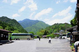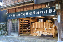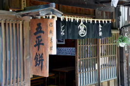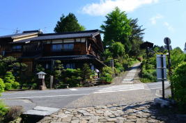 ![]() 5 石畳の坂道が続く馬籠宿。明治28年と大正4年の火災で江戸期の建物は焼失したため、現在の建物は復元されたものだが、雰囲気は十分だ。