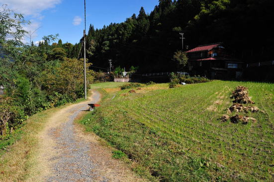 ![]() 36 下り谷の集落を抜け、田んぼのそばを通る。