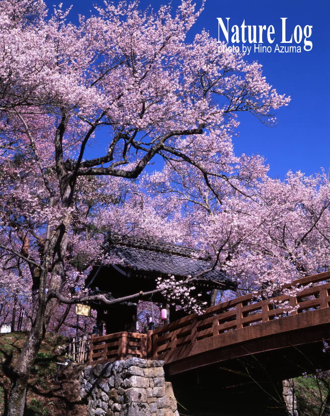 ![]() 反り橋の桜雲橋(おううんきょう)と満開のコヒガンザクラ。高遠城址公園を代表する撮影ポイント(1999.04) |