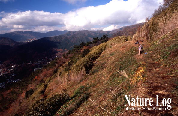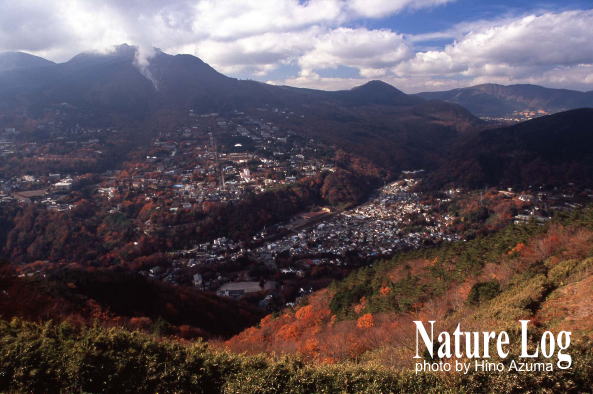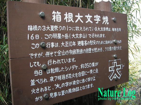 その斜面上部に立つと眼下に強羅温泉、その奥に冠ヶ岳もそびえ、素晴らしい展望。逆にいえば山麓から大文字がよく見えることを意味する。