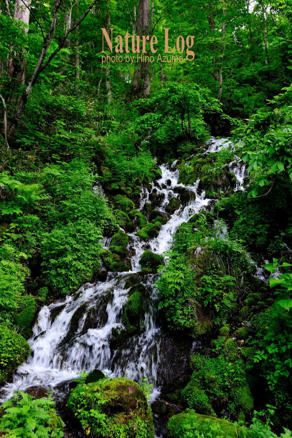 以前、植物記「コンロンソウ」で取り上げた福島県檜枝岐村の「橅坂の清水(ぶなさかのしみず)」なんか、まさに絵に書いたような清流。尾瀬御池に上がる国道352号の途中にあり、6月であればコンロンソウが咲き乱れ、苔むす岩の間を清流が流れ落ちている。30年くらい前に偶然、初めて見つけた時は、名前を記した看板もなかったが、印象に残るほどだった。そのため以後も通る度に立ち寄っていた。景観的に優れた清流だからこそ、わざわざ名前を付けたのだろう。