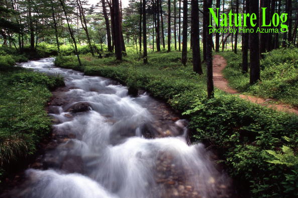 長野県木島平村・カヤノ平高原。あまり知られていないコースで見かけた清流。撮影2003年。