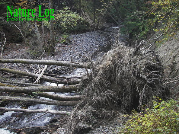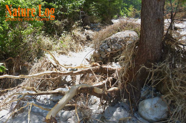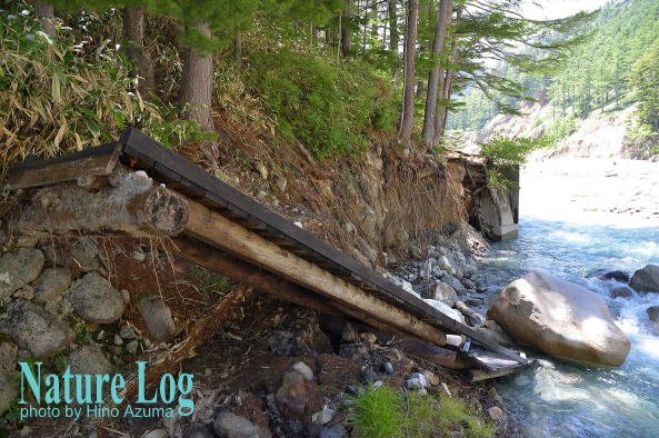 ![]() 豪雨後の上高地・河童橋。いつもは透き通るような清流が魅力の梓川もご覧の通り。せっかく上高地に来たのに期待していた風景写真の撮影は断念。新緑シーズンが一番いい時期なのに…。 ![]() 同じく上高地。明神橋付近で見た梓川。右のピークは六百山。 ![]() 豪雨のせいで濁った八方池。一応、薄っすらと白馬三山や不帰ノ嶮を水面に映してはいたが、完全に期待外れ。数日前からの現地の気象状況を確認しないで行くと、稀にこうした外れに当たってしまう。撮影1998年。 ![]() 長野県小谷村で1994年5月に撮影した写真。小谷温泉に続く県道沿いを流れる中谷川がすごいことになっていた。雪解け増水に加えて豪雨にも見舞われた? 奥は頸城山塊の天狗原山。 ![]() 同じく小谷村・中谷川の濁流。 ![]() 北アルプス・徳本峠(とくごうとうげ)から下った島々谷南沢で撮影。豪雨で増水し、根元が洗い流されて倒れた木。撮影は2005年。 ![]() 高妻山や戸隠山に続く大洞沢(おおぼらさわ)コースに流れ出ていた土砂。直前に豪雨があったので、崩れて間もないと思われた。撮影2017年。 ![]() 北アルプス・高瀬渓谷。2018年の豪雨はすごい爪跡を残した。増水により大きく削られた谷の左岸。撮影は被害直後。以下写真4点も同じ。こちらも→本サイト・にっぽん全国渓谷めぐり「高瀬渓谷」 ![]() 高瀬渓谷沿いの登山道も奥の方はかなり荒れていた。桟道もこんな状態に。 ![]() 高瀬渓谷の湯俣温泉・晴嵐荘(写真中央の建物)一帯はおびただしい岩礫が堆積していた。左側に登山道がのびており、晴嵐荘との間には吊り橋も架けられていたが、跡形もなく流されていた。 ![]() 同じく高瀬渓谷。木の根元も洗われて根っこが露になっていた。しかも砂礫や小石を含んだ水流のせいで根の皮まで剥がされていた。 ![]() 同じく高瀬渓谷。コンクリート護岸も剝ぎ取られて傾いていた。すさまじいエネルギーである。 ![]() 2008年の集中豪雨で無数の岩に覆われたガレ場となり、かつての景観が一変してしまった鈴鹿山脈・御在所岳の裏道。内藤小屋奥の渓谷。撮影2015年。 |